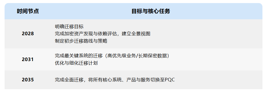 可以看到,欧盟路线在“2030”这个节点上赋予了较强的紧迫性与压迫力:如果高风险系统在2030年之后才迁移,将面临更大的量子威胁风险。